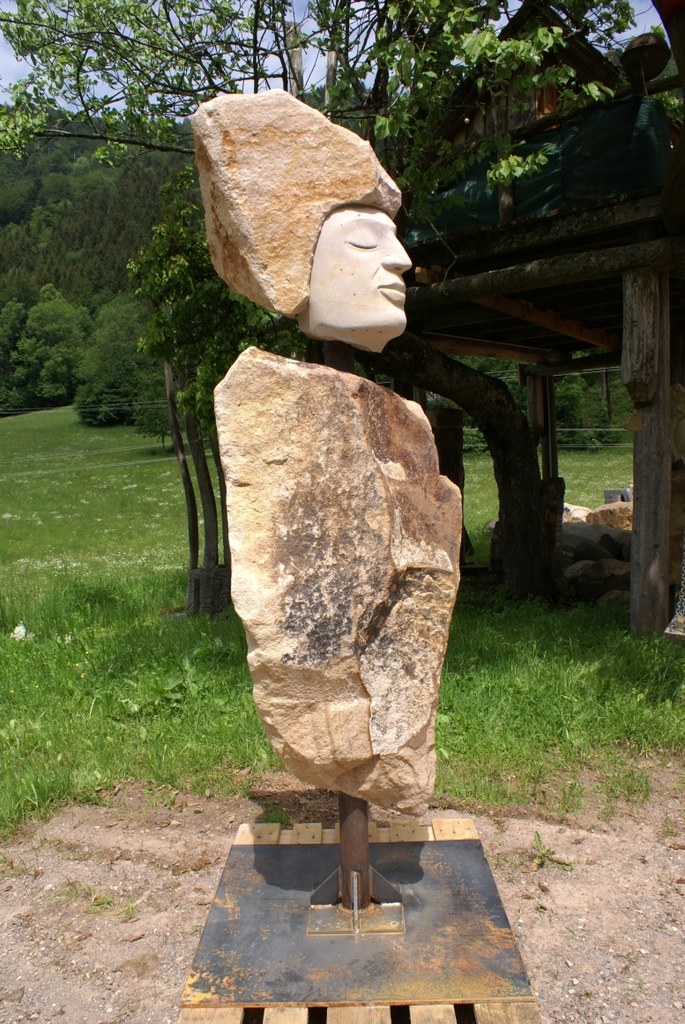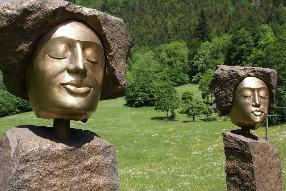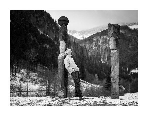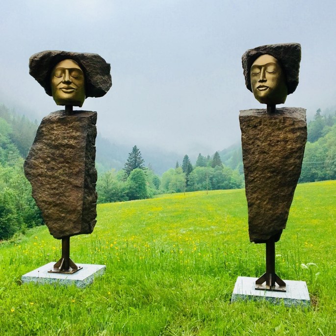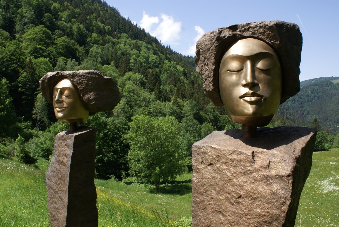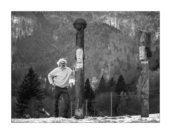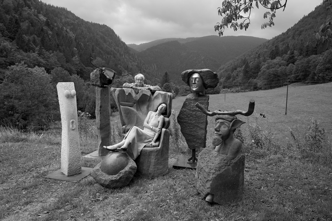 "Die Akustischen Vier" und Robert mit Rex in der Ausstellung der Bildhauerwerkstatt Martin Wiese –