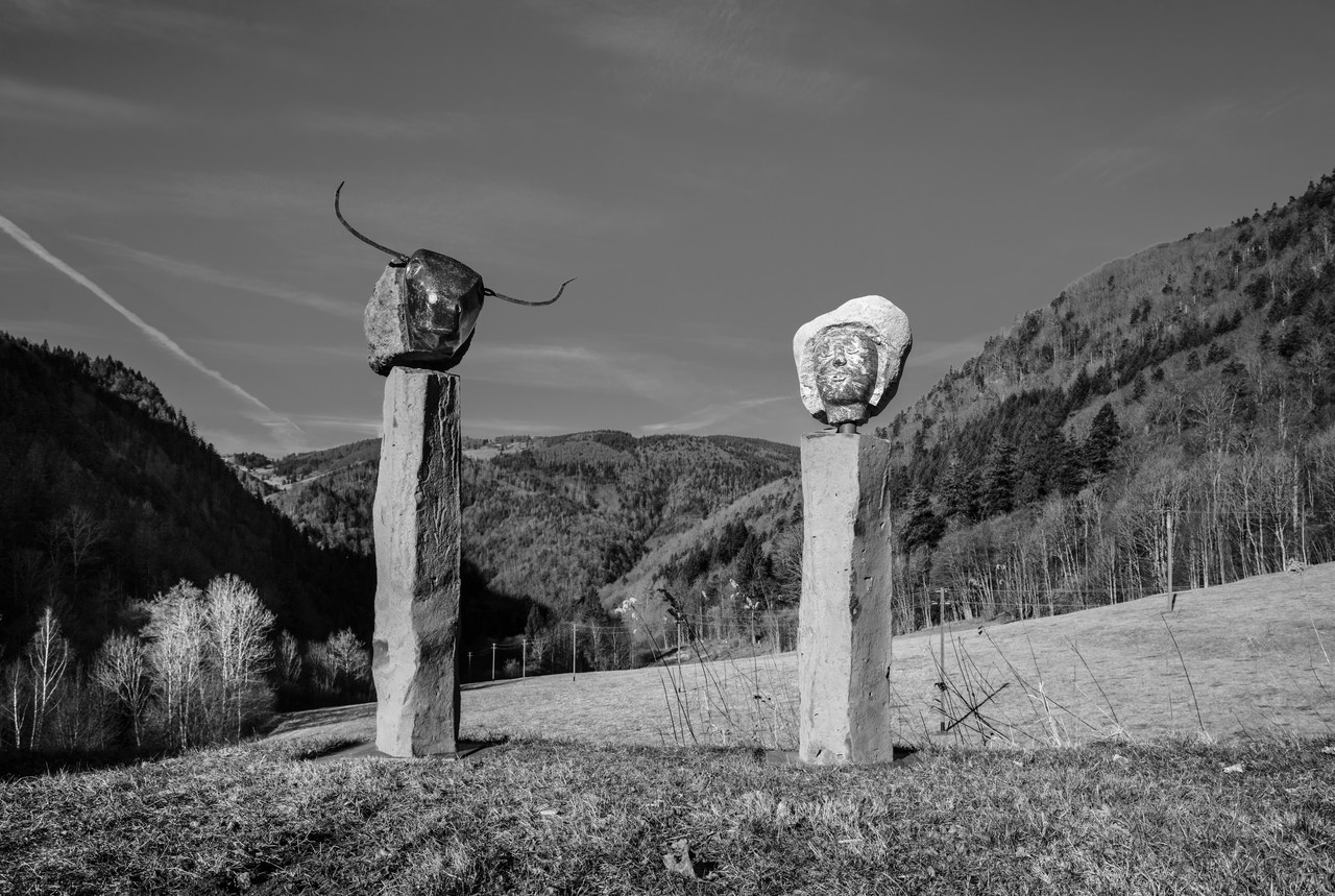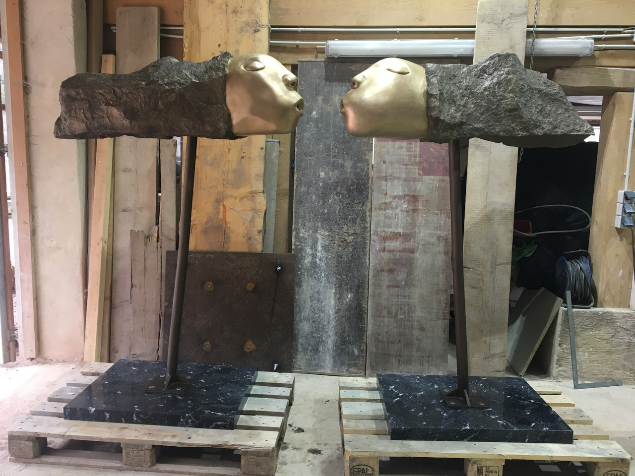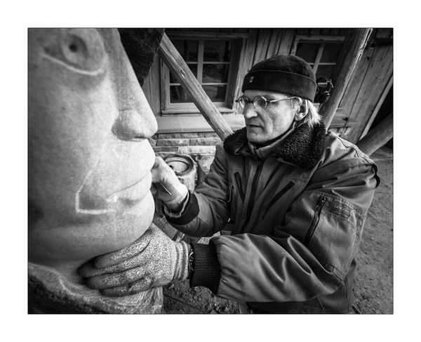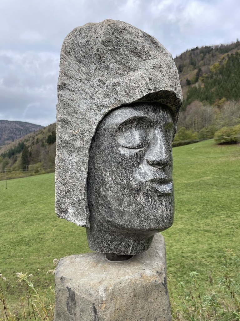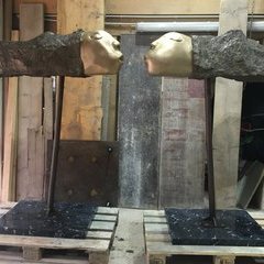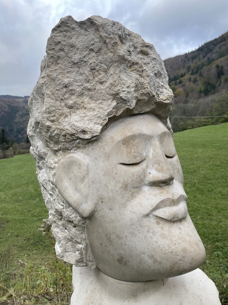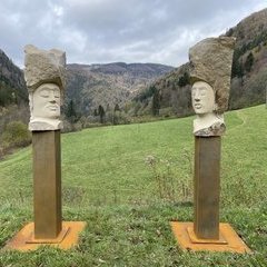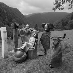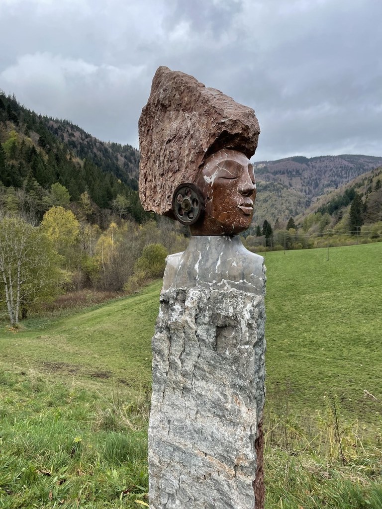 "Die Akustischen Vier" und Robert mit Rex in der Ausstellung der Bildhauerwerkstatt Martin Wiese –
