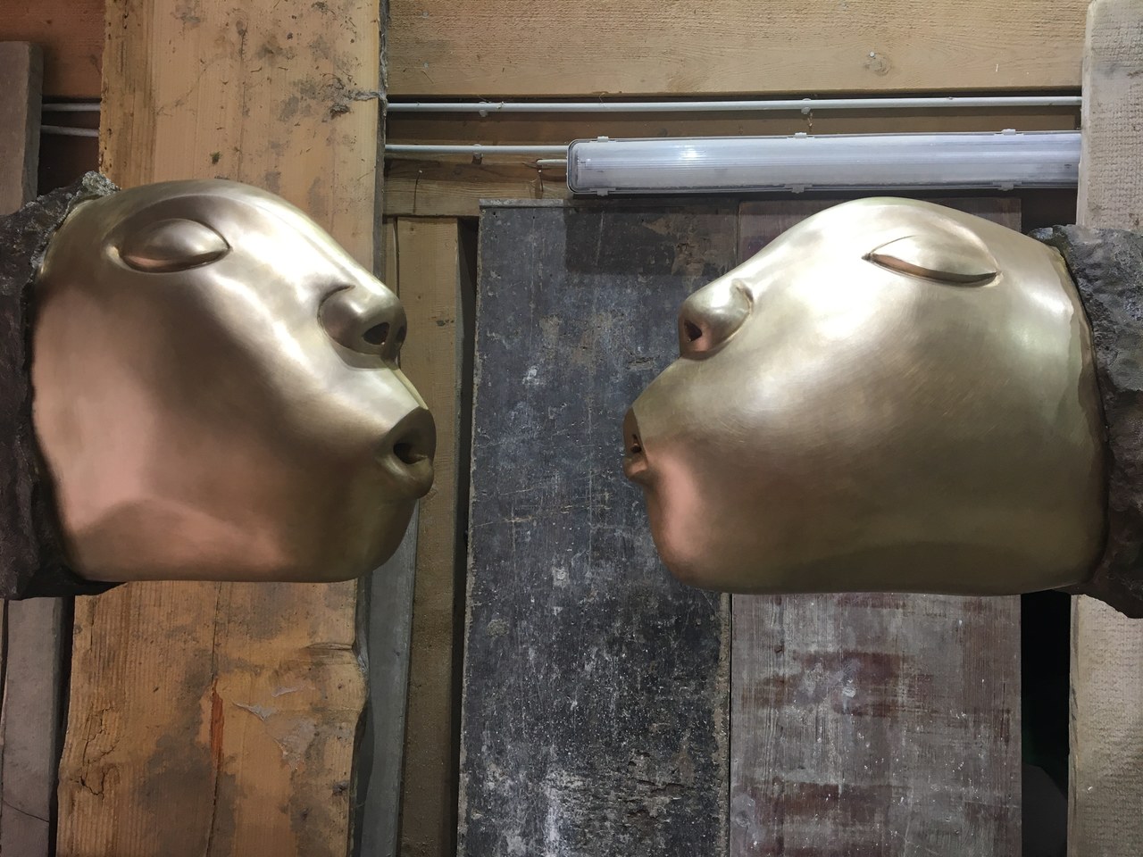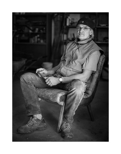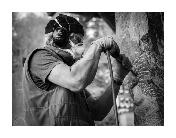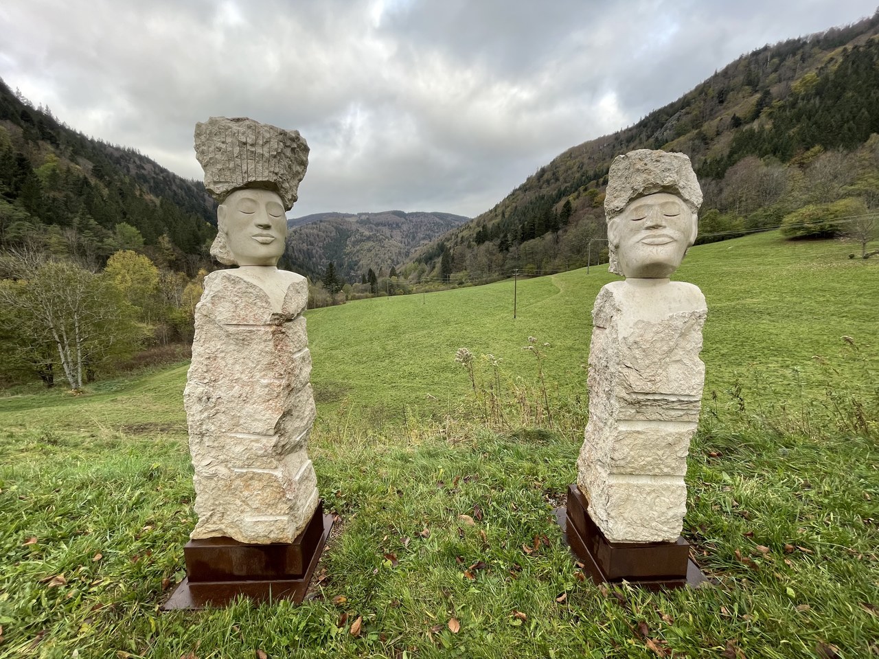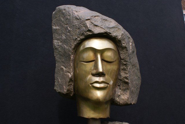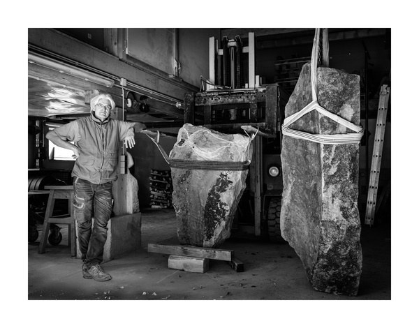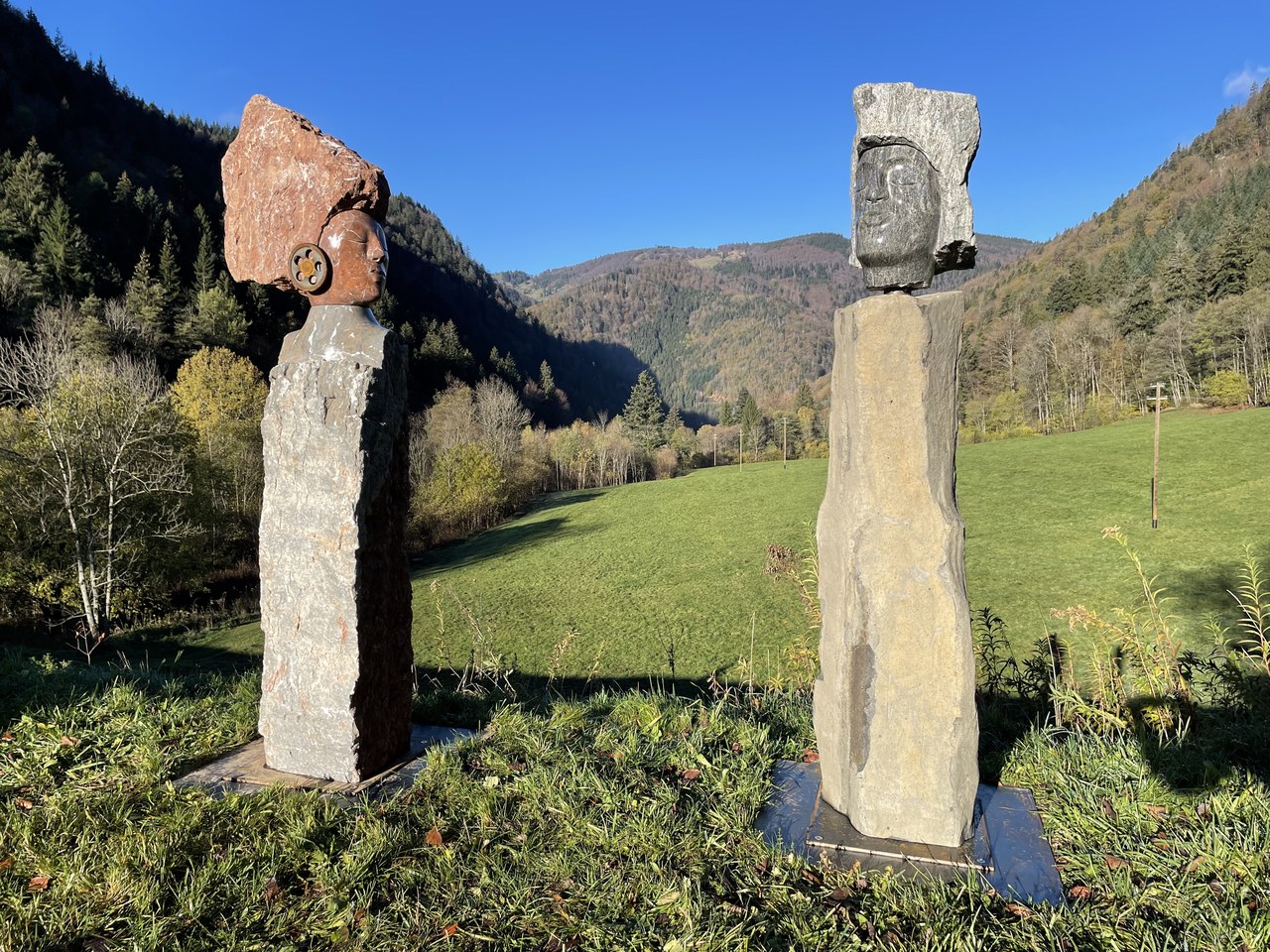 "Die Akustischen Vier" und Robert mit Rex in der Ausstellung der Bildhauerwerkstatt Martin Wiese –