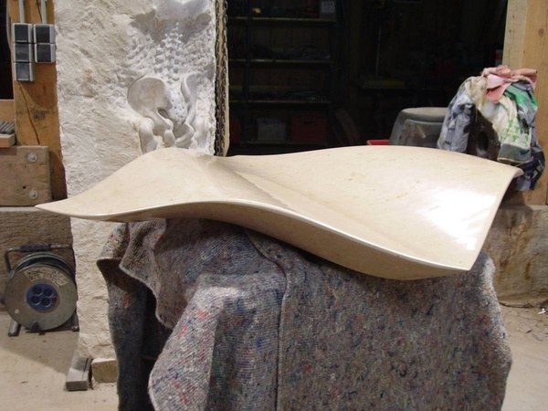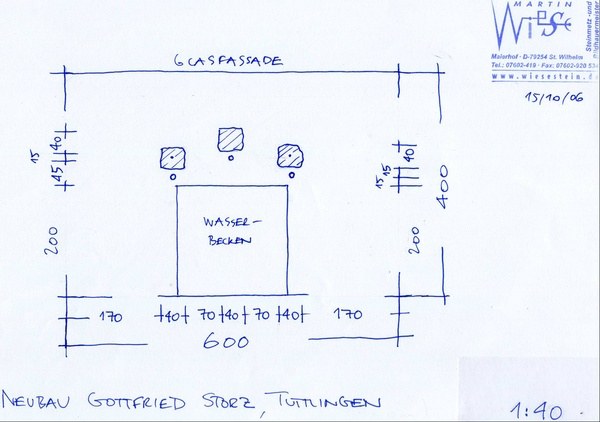 Als Balance zu diesem Thema ist das ebenfalls in Jurakalk ausgeführte Objekt in der Mitte des Wasserbeckens angedacht.