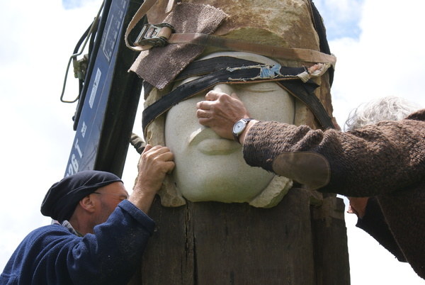 In beschriebene Nische des Eichenstammes habe ich einen weiteren Sandstein eingeklinkt, den Bauchraum. Aufgerissen und grob geklammert. Die Diskrepanz zwischen Kopf und Bauch, zwischen Wissen und Lethargie, zwischen Ignoranz und Wahrnehmung.Die Zeit läuft, wo keine Klammer diese Wunde mehr im Zaum halten kann.