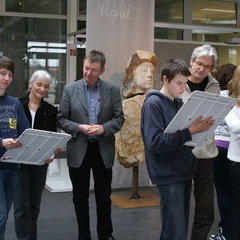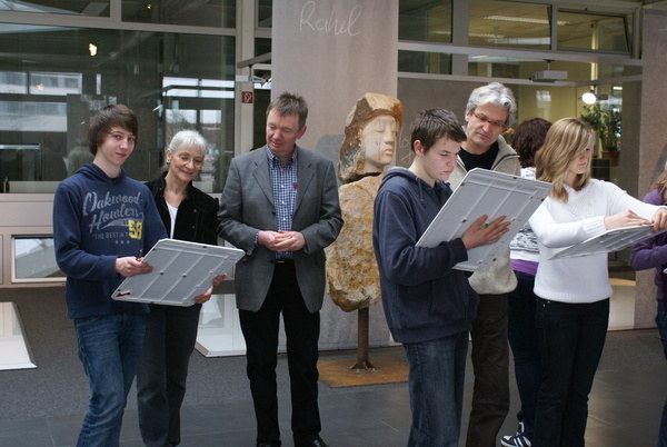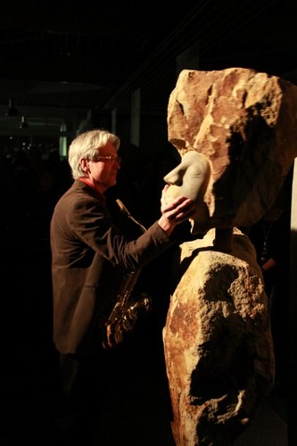 Die Vernissage am 16.01. besuchten an die 300 Personen. Im Wechsel mit der Laudatorin Anja Schlager (Kunsthistorikerin aus Freiburg), die die einzelnen Werke vorstellte, intonierte Martin Wiese die Skulpturen aus der Fragmente Serie auf seinem Tenorsaxophon.