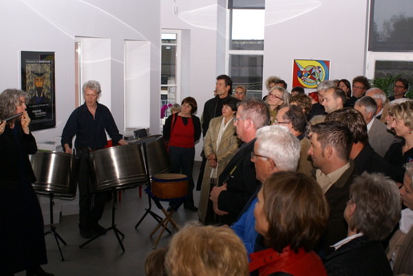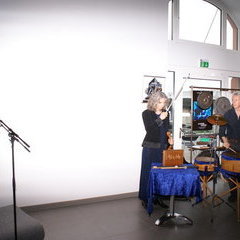 Am 7. Mai fand im Foyer der kunsthalle die Vernissage mit zahlreichen Gästen statt. Laudatorin Anja Schlager (Kunsthistorikerin aus Freiburg) stellte das Werk sowie die ausgestellten Arbeiten vor - im Wechsel und Zusammenspiel mit den Musikern Rolf Grillo und Elisabeth Osevoldt.