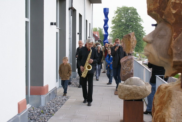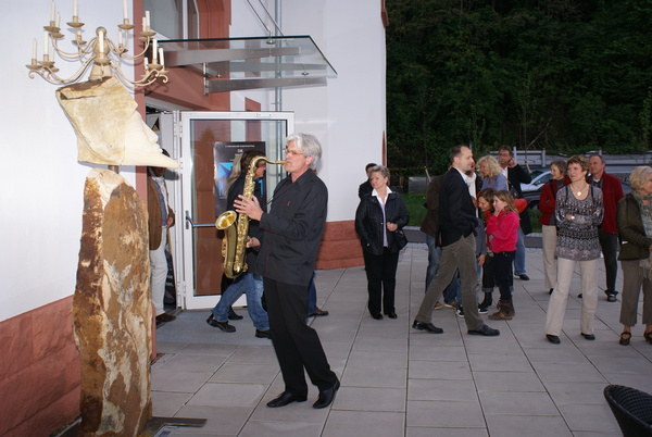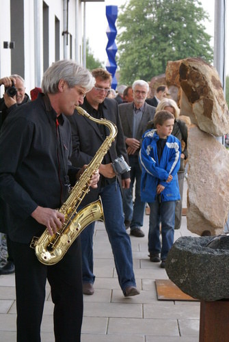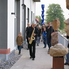 Zum Abschluß spielte Martin Wiese Saxophon mit den Musikern um dann gemeinsam mit den Besuchern in die SkulpturenGalerie zu ziehen, in der er die einzelnen Skulpturen bespielte und ihre Charaktere interpretierte.