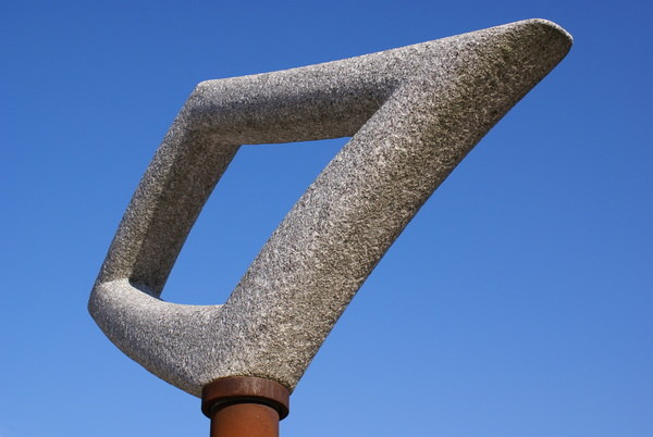 Das Steinobjekt hat eine Spannweite von ca. 170 cm. Es ist in einer gebogenen Form, einseitig konkav/ Konvex aus einem Schwarzwälder Granitfindling mit Hilfe einer Seilsäge herausgeschnitten worden, um dann manuell weiter bearbeitet zu werden.