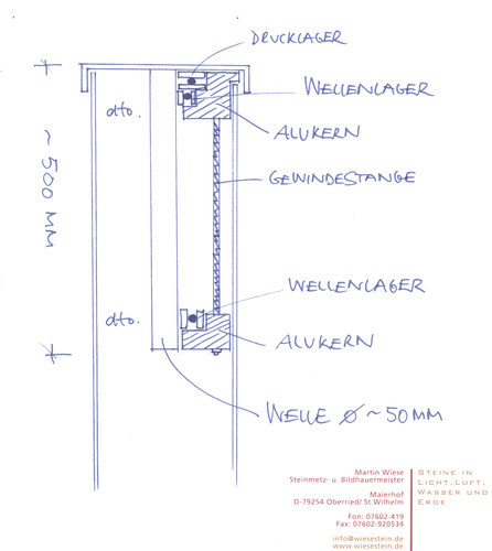 Bei weiteren Überlegungen, ästhetischer,aber auch sicherheitstechnischer Art, entstand ein Objekt, bei der ein passend dimensioniertes Rohr das filigrane Steinobjekt trägt.