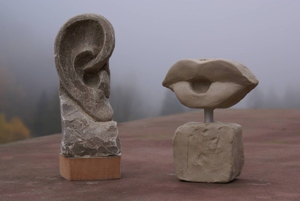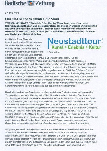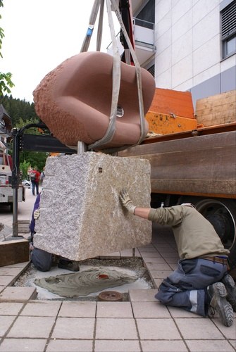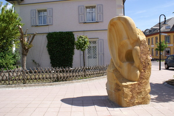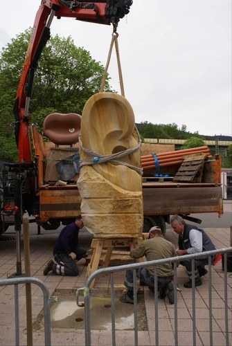 Ein überdimensionales Ohr aus gelbem Sandstein steht auf einem kleinen Platz unweit des Bahnhofs. 60 Meter weiter in Richtung Oberstadt befindet sich die zweite Skulptur. Direkt bei der Sparkasse, ebenfalls auf einem kleinen Platz, befindet sich ein großer Mund aus rotem Sandstein. Dieser ist durch zwei Edelstahlrohre mit einem mächtigen Granitsockel verbunden.