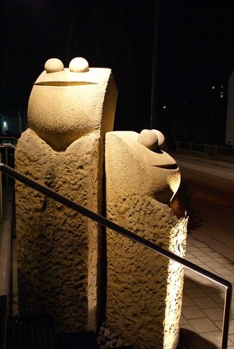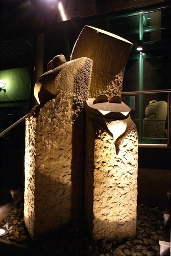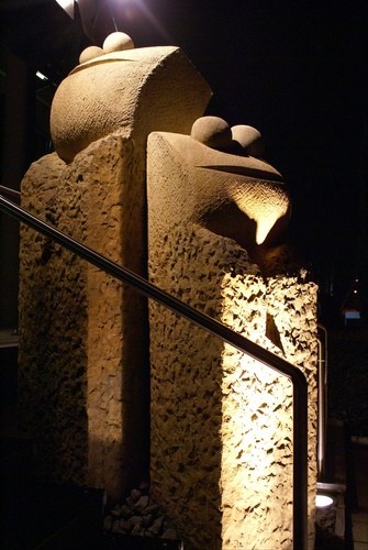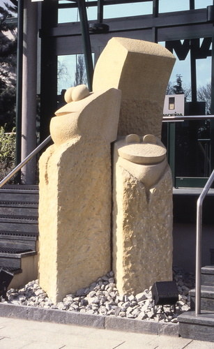 Nach dem Ankauf des Objekts "Kontakt"- Hommage an Max Ernst, ergab sich darüber hinaus eine Gestaltung des Haupteingangs der Firma des Käufers.Ein Thema wurde nicht vorgegeben. Anhand der Formensprache des Objekts "Kontakt", entwickelte ich eine dreiteilige Figurengruppe.