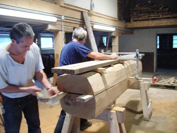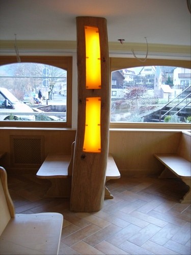 Die Idee zur Lichtsäule entstand. Hierzu wurde ein Eichenstamm grob bearbeitet und angeschliffen, halbiert, entkernt, zwei Fenster eingeschnitten und schließlich in der Trockenkammer für zwei Wochen gelagert.