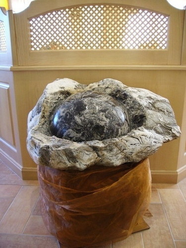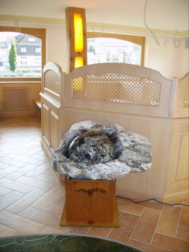Da Sandstein im Innnenbereich in Verbindung mit umlaufendem Wasser recht schnell veralgt, habe ich abgeraten und einen Gneisfindling aus dem Südschwarzwald empfohlen.