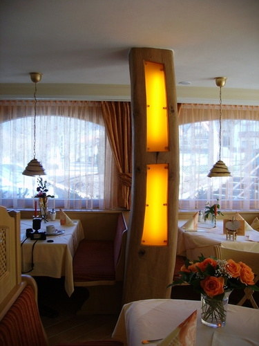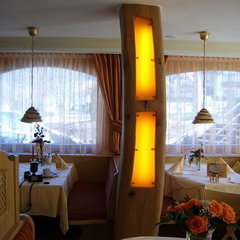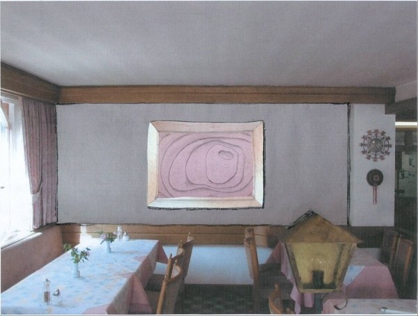 Künstlerische Ausgestaltung des zu renovierenden Restaurants im Hotel Rosengarten.Bei der Sanierung des Restaurants wurde ein Eisenpfeiler freigelegt, den es galt in das Gesamtbild zu integrieren.