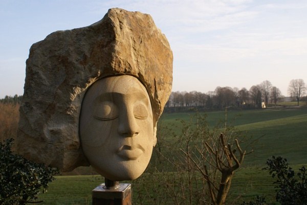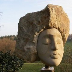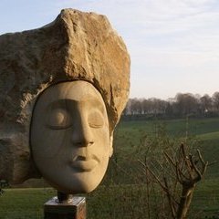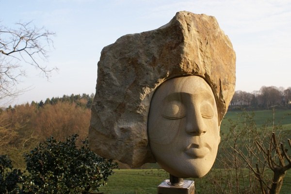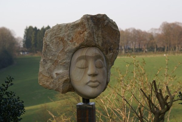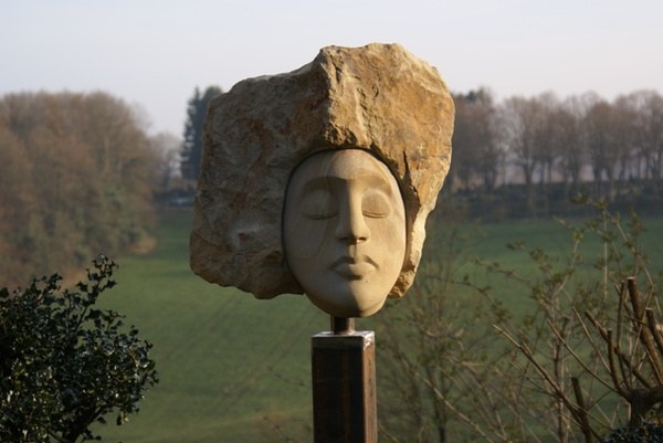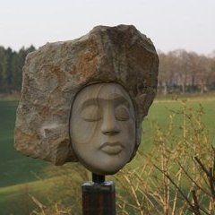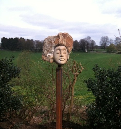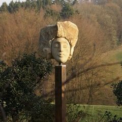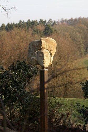 Allegra steht im Bergischen Land am Rande einer Naturlandschaft.Allegra, die Freundliche, ruht auf einem Eisenkorpus, sich drehend um 360 ° und nimmt Kontakt zu ihrer Umgebung auf, dem Garten, den Menschen und der Weite der Natur.