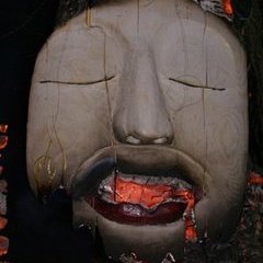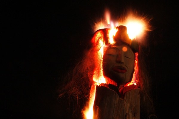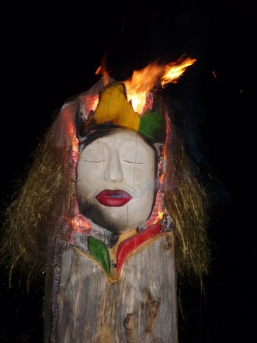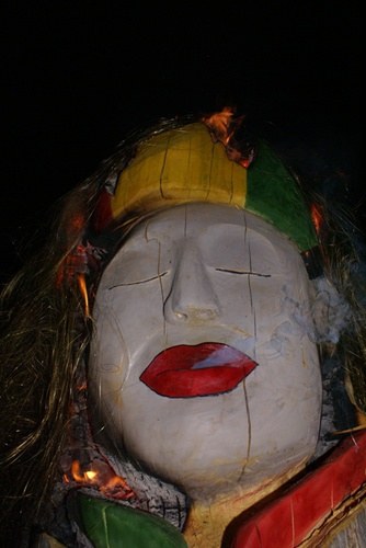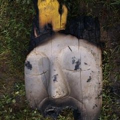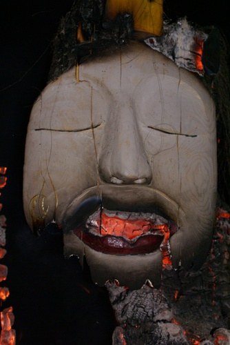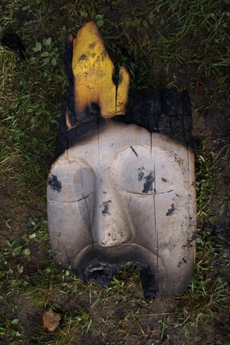 Gegen fünf Uhr morgens fiel schließlich der Kopf hernieder, insgesamt 48 Stunden brandte und rauchte die Skulptur ...