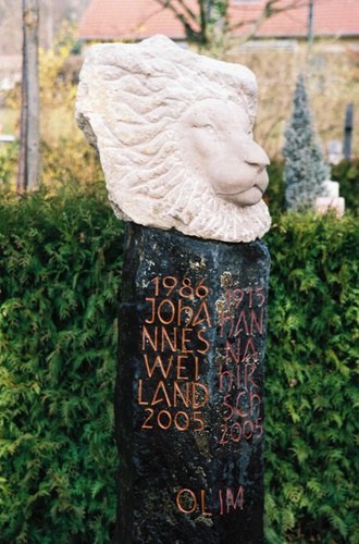 Löwe war das Tierkreiszeichen des auf tragische Weise verstorbenen jungen Mannes. Im wahrsten Sinne des Wortes sollte hier ein Denkmal, ja vielleicht auch Mahnmal entstehen. Ein junger Mann, den der Schrei des Löwen nicht erreichte, ein stummer Schrei voll Kraft und Trauer zugleich.Seine Großmutter starb unlängst nach seinem Ableben. Sie wurde ebenfalls in diesem Grab bestattet.