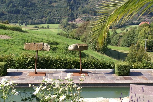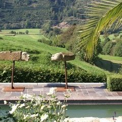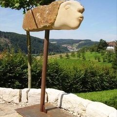 Die Füsterer entstanden zunächst als Vorschlag für ein großes altes Patrizierhaus in der Stadt. Sie sollten lautlos um das Gebäude schweben, um den dadrin Lebenden Schutz zu gewähren. Doch es kam anders. Der spätere Käufer entführte sie für eine optimale Fluposition in einen parkähnlichen Garten in Hanglage. Bereits vorher gab es eine weitere Interessentin, die aber nur einen der unzertrennlichen Flüsterer kaufen wollte. Für sie entstand dann schließlich ein weiterer kleinerer Flüsterer, der nun seine Runden in einem Garten auf der Baar zieht.Bitte klicken Sie das gewünschte Bild an, um es zu vergrößern....