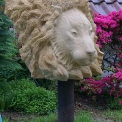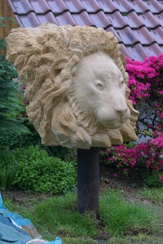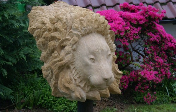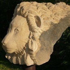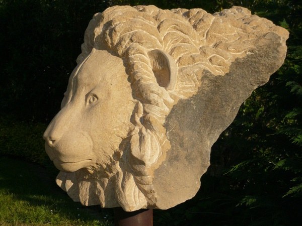 Der Löwe entstand als Auftragsarbeit für Kunden, die viel Zeit ihres Lebens in Afrika verbracht haben.Gewählt habe ich für die Arbeit einen Findling aus ockerfarbenen Rouffacher Kalkstein aus dem Elsaß.